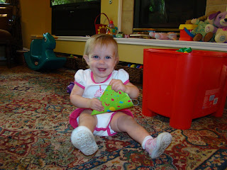 Macall playing with a birthday hat as she waits for all her friends to arrive for the her party!